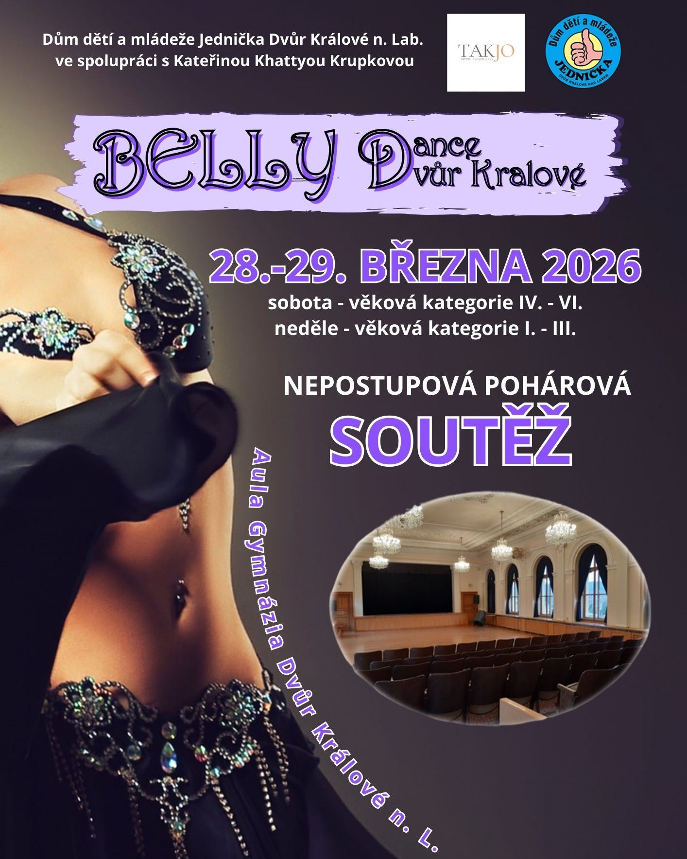 Srdečně zveme na další ročník taneční soutěže Belly Dance Dvůr Králové, která se letos koná poprvé jako dvoudenní, a to v termínu 28.-29. března 2026 v krásném prostoru historické auly místního gymnázia. Přihlašování je možné do 11. března. Otevřeny jsou kategorie pro malé i velké tanečnice včetně seniorek, amatérky i profesionálky, ale také...